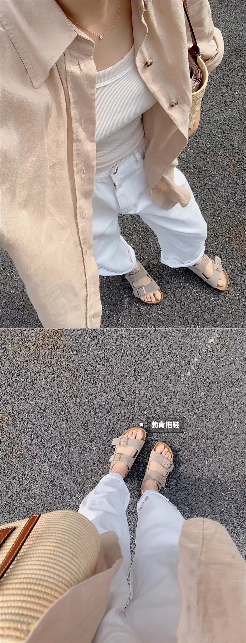 Cowhide Boken Shoes Summer New Cork Thick Bottom Boken Sandals Men's One Word Cool Slippers Women's Grey Green Velvet Face Universal