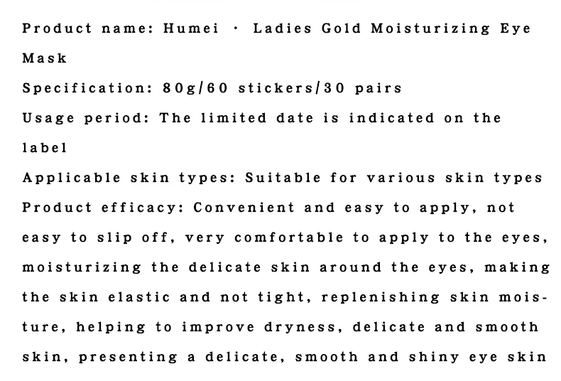 Hu Mei GUI Fu 24K Golden Eye Patch 80g Eye Care Hydrating and Moisturizing Skin Care Eye Patch