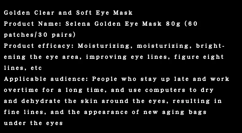 Functions: Anti-wrinkle, remove dark circles, moisturizing