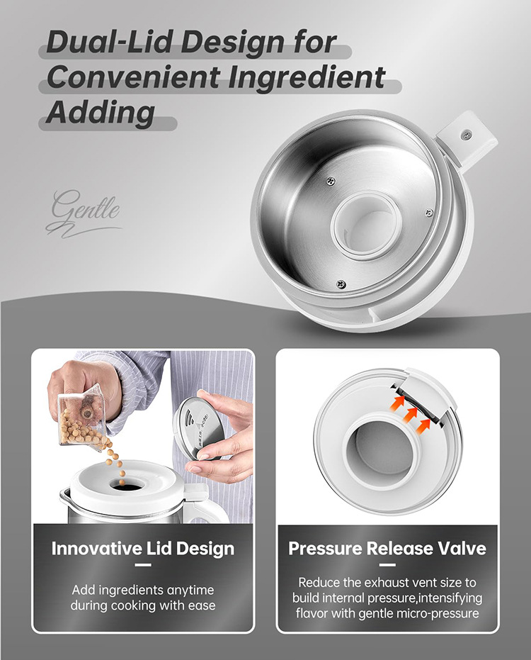 【Innovative Design】: The unique lid within a lid design allows for easy addition while the pressure release valve enhances by increasing internal pressure richer soy milk.