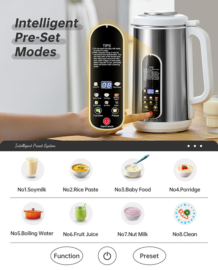 【Quiet Operation】: Almond Maker with four noise reduction features including a sealed rings and noise reducing shell, enjoy quiet operation any time of day or night without disturbance. from eight diverse functions to create drinks at the touch of a button