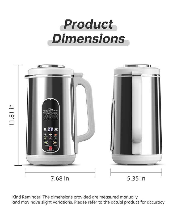 【Efficient and Versatile Performance】: Equipped with an 800W motor , this soy milk maker effortlessly blends dry beans without the need for soaking or filtering, delivering smooth beverage.