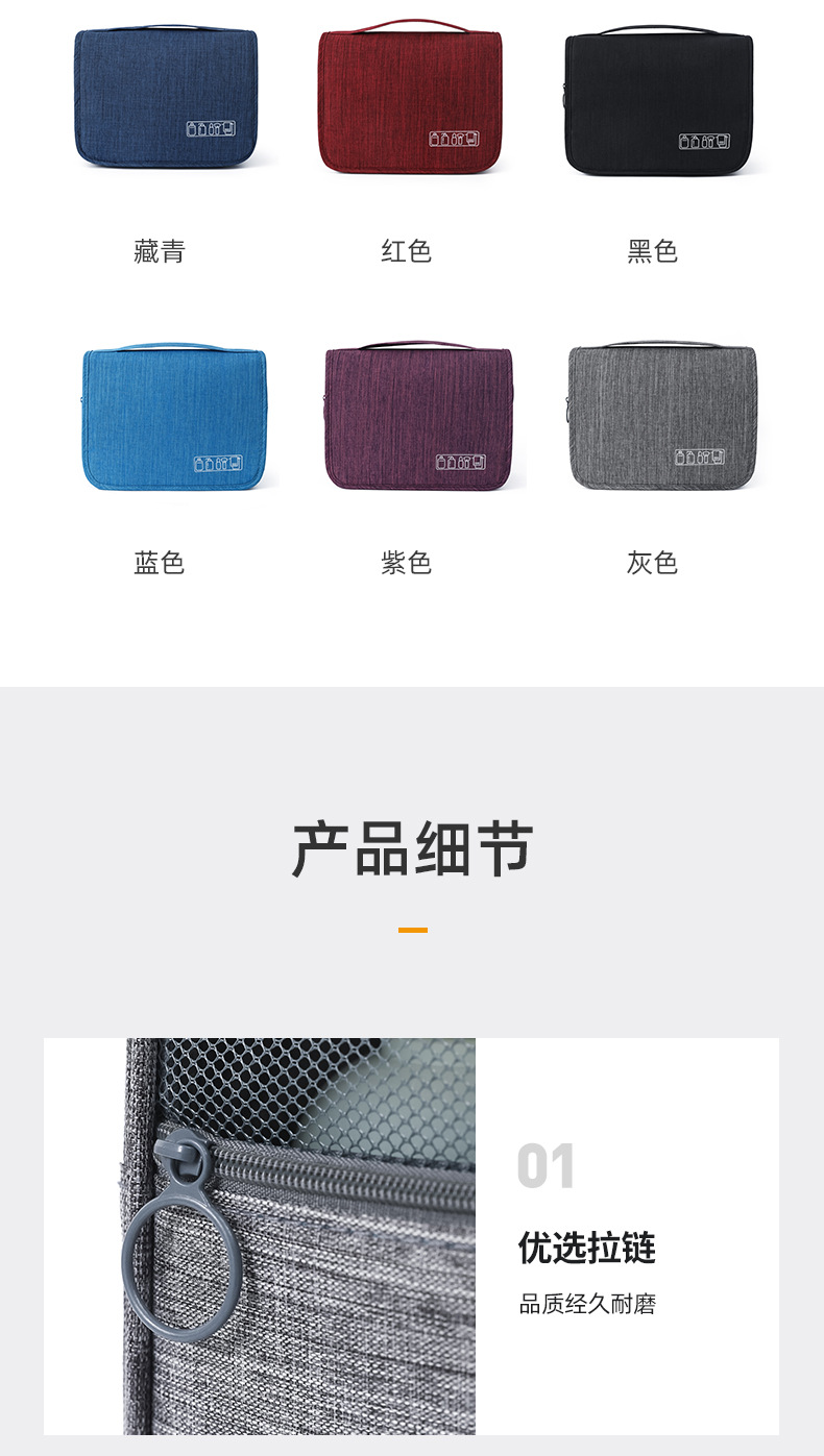 This travel business storage bag is a large-capacity hand-carried toiletry bag for both men and women on business trips. It can be hung to separate dry and wet areas for storage